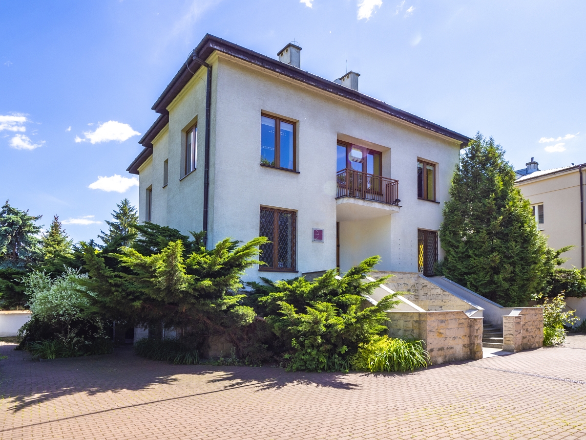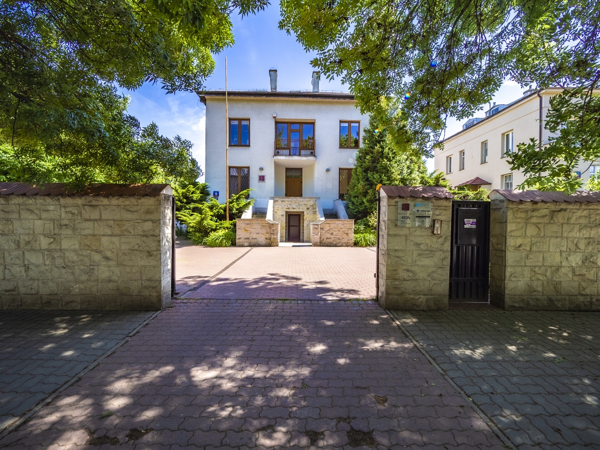 Budynek wolnostojący, podpiwniczony, posiadający trzy kondygnacje nadziemne oraz jedną kondygnację podziemną, o konstrukcji murowanej, posadowiony na murowanych fundamentach. Budynek posiada dostęp do następujących mediów: prąd, woda, kanalizacja, C.O. (własna kotłownia) oraz następujące instalacje: wentylacja, telekomunikacja, kontrola dostępu. Budynek został wpisany do Gminnej Ewidencji Zabytków.